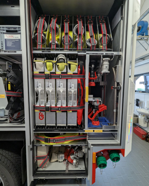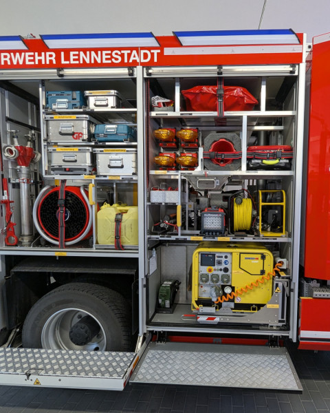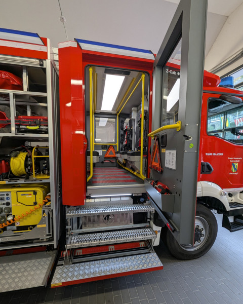 Der Aufbau stammt von der Firma Ziegler. Mit einem 2.000-Liter-Wassertank und einer umfangreichen Ausstattung ist die Einheit künftig für ein breites Einsatzspektrum vorbereitet. Neu an Bord sind unter anderem ein leistungsstarker Lichtmast, ein Elektrolüfter, eine
